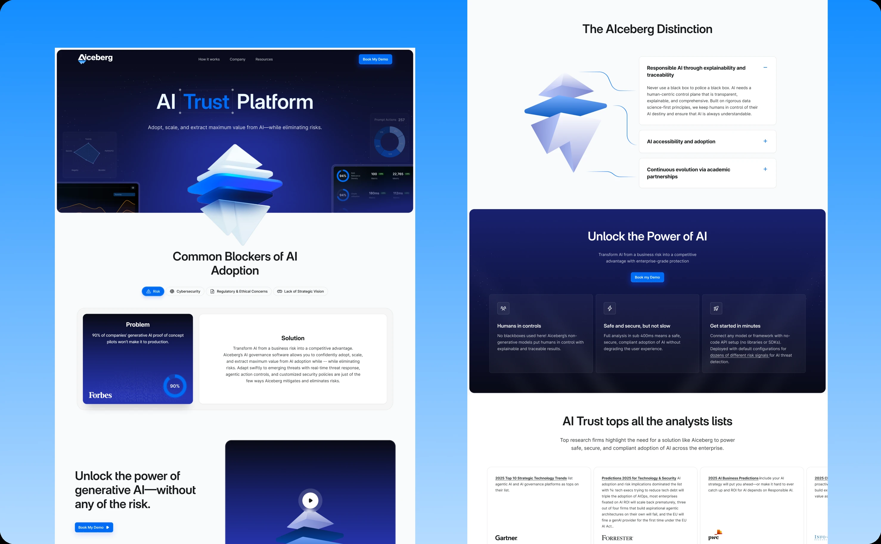 The site needed to educate prospects on AI governance challenges while positioning Aiceberg's solutions as sophisticated responses.