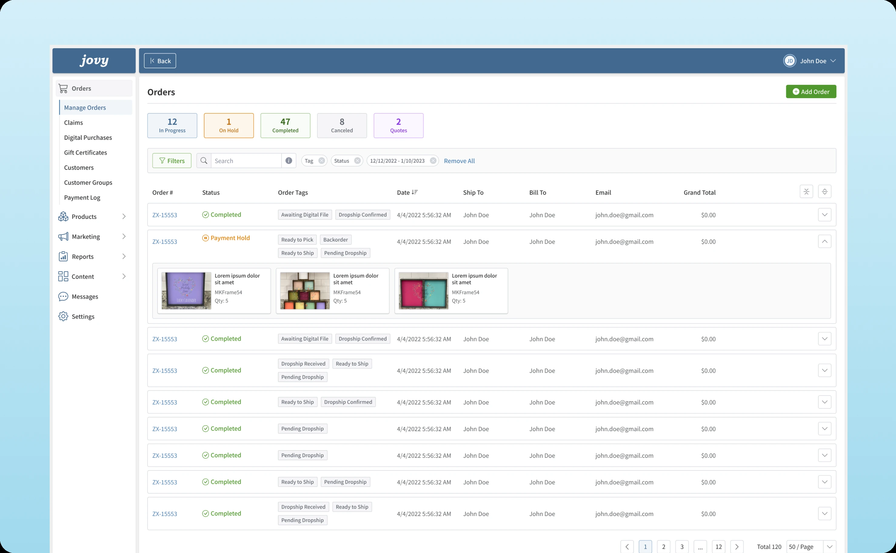 Backorders, dropshipping arrangements, and urgent orders get visual priority. Merchants can scan the dashboard and know instantly what needs action today versus what's on track.