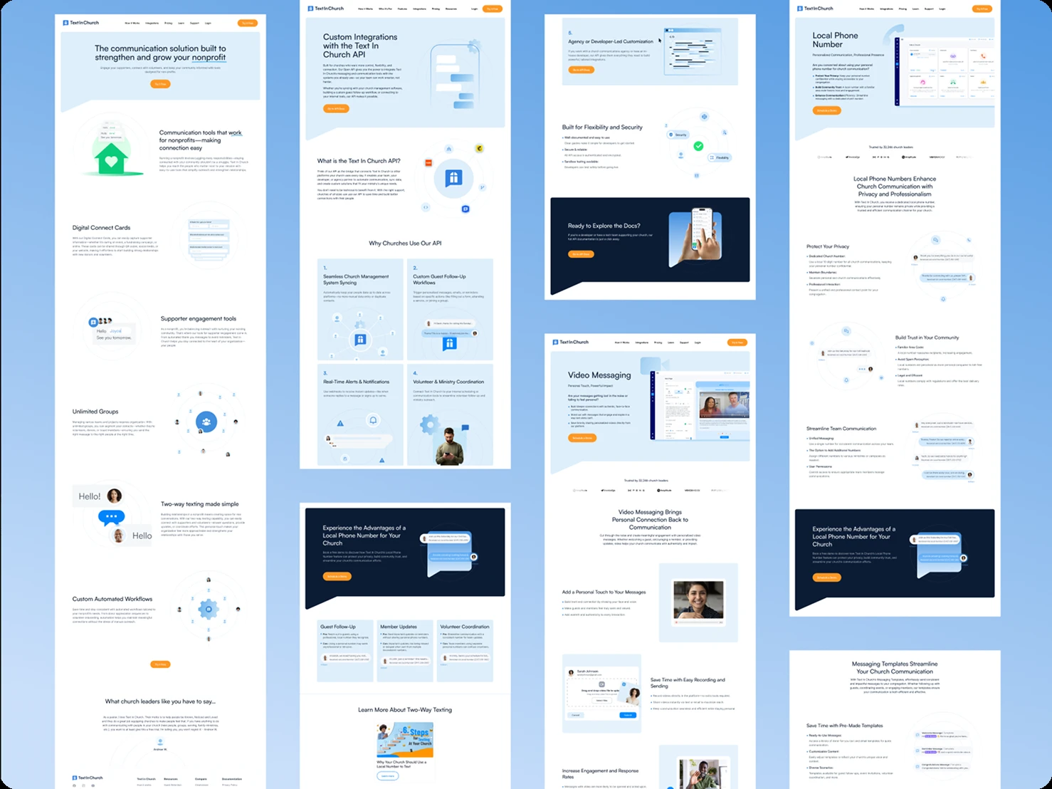 The visual direction leaned into Text in Church's brand personality: warm, welcoming, human. Typography choices felt friendly, not corporate. Color usage was vibrant without being childish. Layouts guided visitors naturally toward conversion points using hierarchy and whitespace, not aggressive pop-ups or pressure tactics.