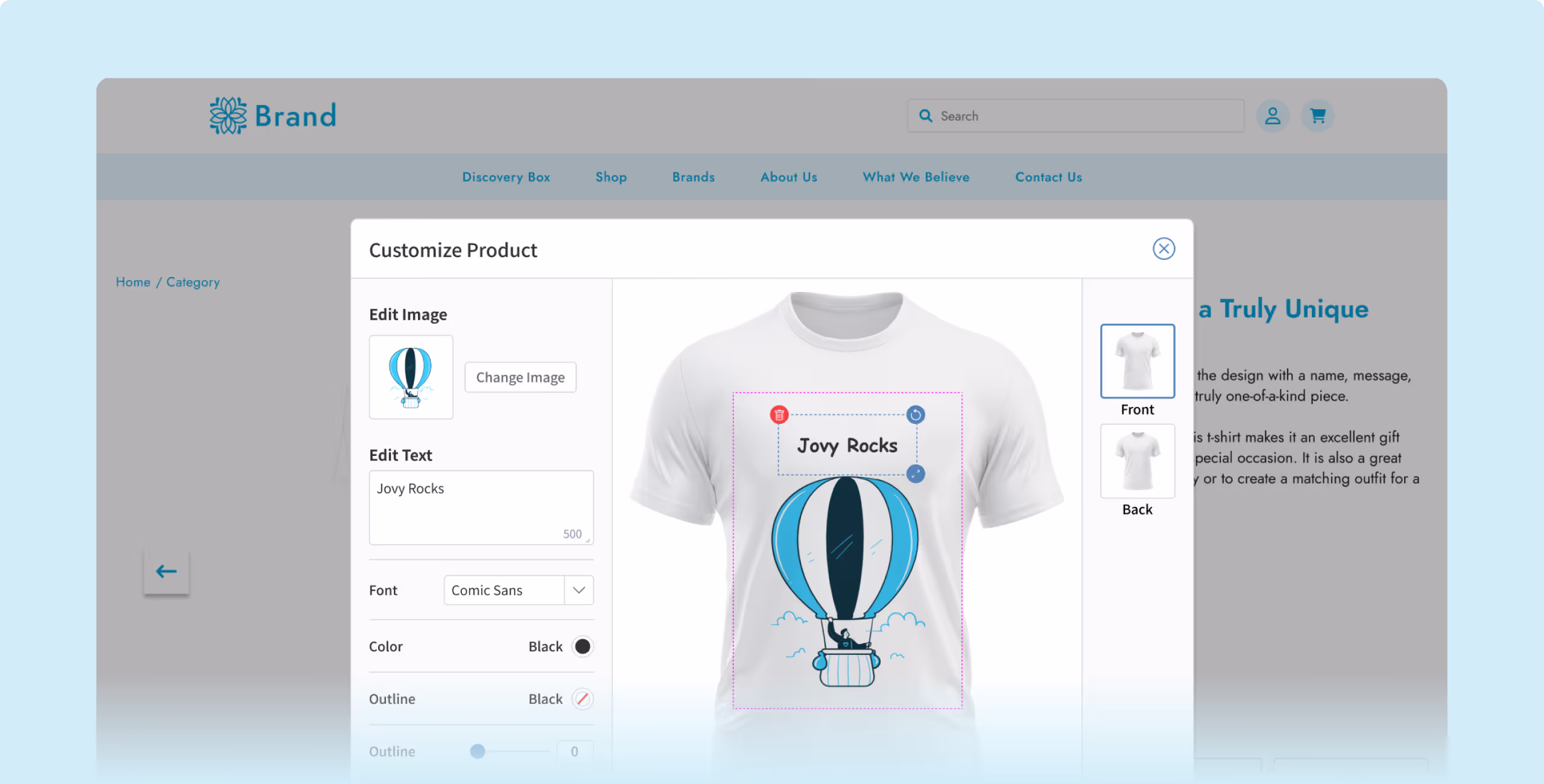 Our Product Customizer lets shoppers personalize everything from t-shirts to mugs with a simple click. The intuitive editor keeps designs within safe print areas while making customization feel effortless. By refining both admin and customer interfaces, we boosted engagement and sales.